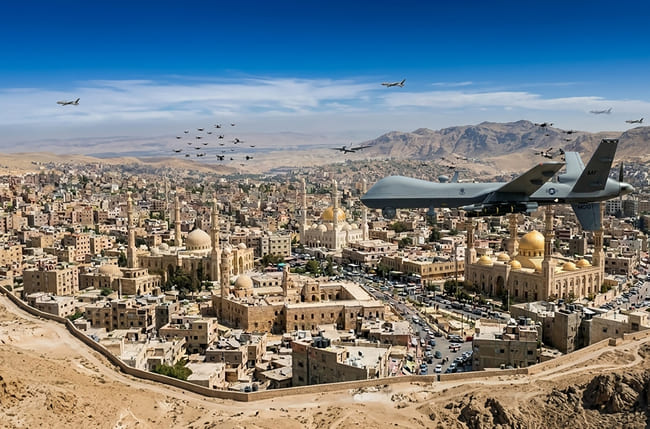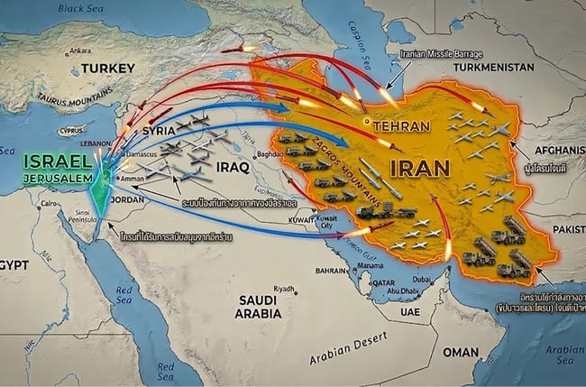 ในเวลาเดียวกัน ความขัดแย้งในระดับภูมิภาคระหว่างอิสราเอลและอิหร่านก็ขยายตัวออกไป ผ่านการโจมตีทางอากาศโดยตรง การใช้กองกำลังตัวแทน (Proxy Forces) อย่างฮิสดุลลาห์ (Hezbollah) ในเลบานอน  ฮูติ (Houthi) ในเยเมน และกลุ่มติดอาวุธต่างๆ ในซีเรีย และอิรัก แต่ละฝ่ายล้วนใช้โดรนอัจฉริยะ ขีปนาวุธนำวิถีด้วย AI และระบบตอบโต้อัตโนมัติในระดับที่ไม่เคยปรากฏมาก่อน ทำให้นักกฎหมายระหว่างประเทศ นักปรัชญาด้านจริยธรรม และนักวิทยาศาสตร์คอมพิวเตอร์ต้องหันมาร่วมถกเถียงคำถามเดียวกันว่า: “ใครหรืออะไรที่รับผิดชอบทางศีลธรรมเมื่อ AI เป็นผู้ตัดสินใจสังหาร?”